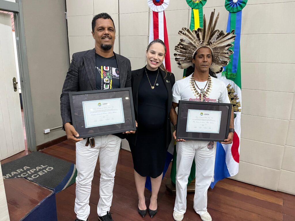 “É uma honra entregar a Comenda Mestre de Capoeira Pedro Índio Axé, uma honraria que presta homenagem a quem luta por essa arte, a vocês que já estão na história da capoeira. A força cultural que temos hoje também vem da capoeira e das nossas origens que estão ligadas a esta arte que envolve tradição, luta, dança e cultura. Vocês, mestres Muruim e Tapurumã, são pessoas com história de vida e ensinam todos os dias que a capoeira é um instrumento de transformação social”, contextualizou Olivia Tenório.