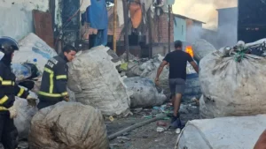 Incêndio de grandes proporções atinge galpão de reciclagem em Maceió
