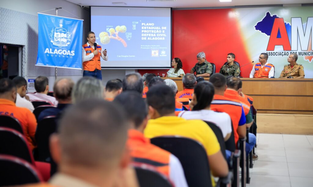 O evento foi realizado no auditório da Associação dos Municípios Alagoanos (AMA) e reuniu representantes da segurança pública e das defesas civis municipais.