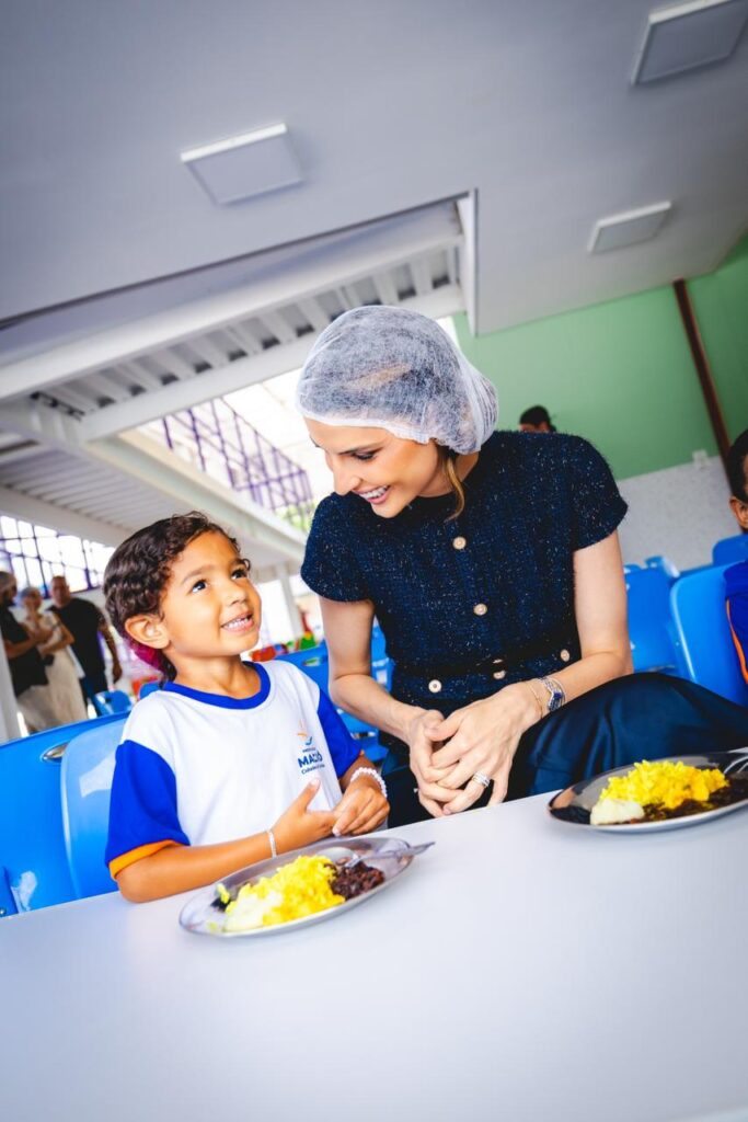 Durante visita a uma unidade do programa Gigantinhos, considerado o maior projeto educacional da história de Maceió, ela destacou que, além da oferta de alimentação, as crianças são acompanhadas por equipes preparadas, que orientam o momento das refeições e contribuem para o desenvolvimento infantil e a construção de hábitos saudáveis desde a primeira infância.