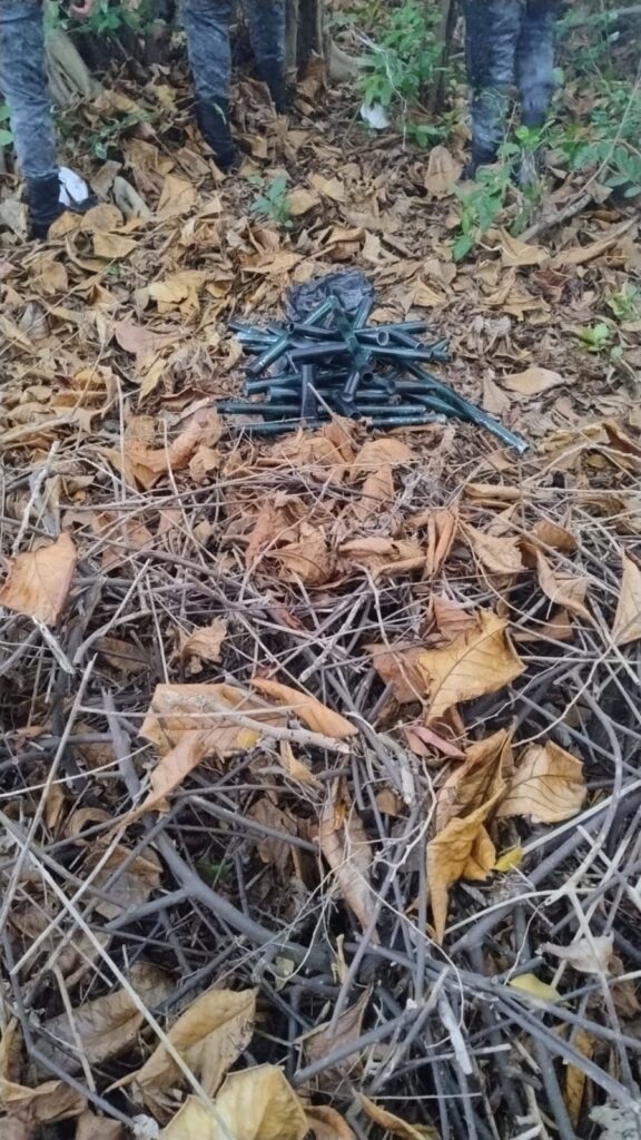 No local onde as armas e munições foram encontradas, foi identificada ainda uma marcação em árvore com a sigla “CV”, possivelmente utilizada para sinalizar o ponto de ocultação do material ilícito.