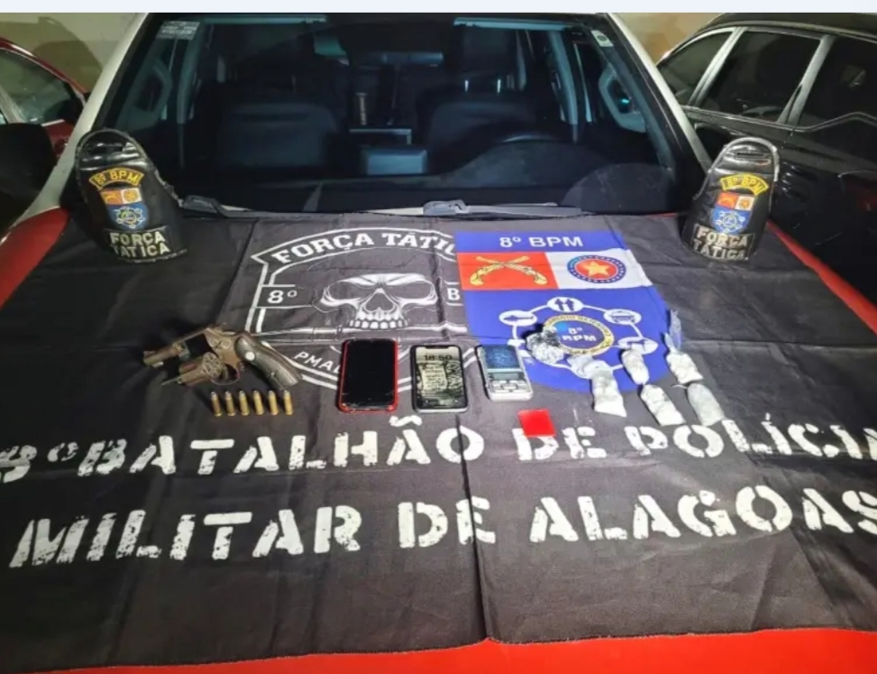 Um homem de 23 anos foi preso pela Polícia Militar nesta quinta-feira (16), no município do Pilar, após ser flagrado com arma de fogo e drogas.