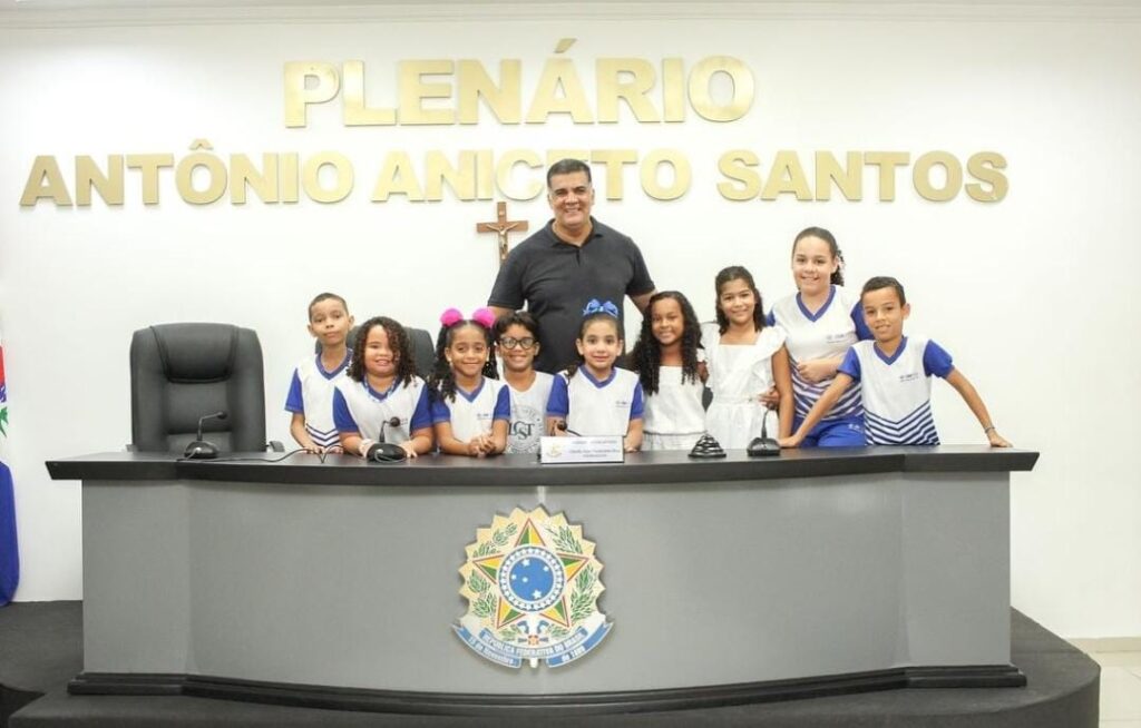 O vereador Alex Cavalcante (MDB) recebeu os alunos da Escola Municipal Washington Maia em seu gabinete. Além de alunos, o vereador também teve a presença da diretora Elianai de Lima e a servidora Fran.