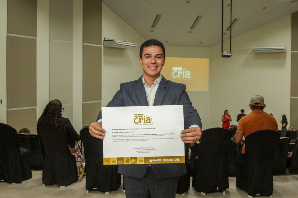 O município de Pilar conquistou, pelo terceiro ano consecutivo, o Prêmio CRIA – Melhor Creche Cria de Alagoas, reconhecimento concedido pelo Governo do Estado, por meio da Secretaria de Estado da Primeira Infância. A premiação foi entregue durante solenidade realizada na Reitoria da Universidade Federal de Alagoas (UFAL) e destaca as políticas públicas voltadas ao desenvolvimento da primeira infância.