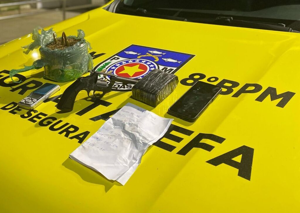 Em ações de combate ao crime, a Polícia Militar de Alagoas (PM) flagrou e deteve autores de atos ilícitos em Rio Largo e Arapiraca. Na madrugada de segunda para terça-feira (1º), o 8º Batalhão de Polícia Militar (BPM) apreendeu dois tabletes de maconha, pesando cerca de 600g, três munições (duas de 5.56mm e uma de 7.62mm), um revólver calibre 38 com cinco munições, uma balança de precisão, um celular e uma folha de anotações sobre a dinâmica do tráfico.