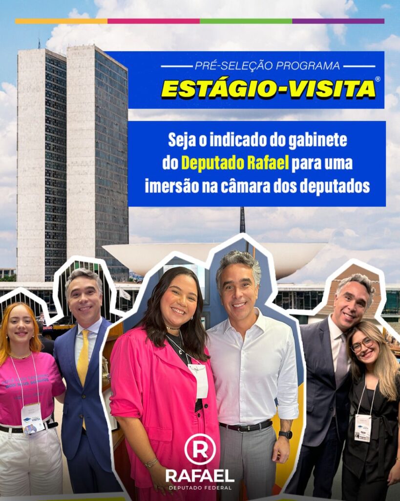 O deputado federal Rafael Brito (MDB-AL) anunciou, em suas redes sociais, a abertura das inscrições para a pré-seleção de estudantes que desejam participar da segunda edição de 2025 do Programa Estágio-Visita, promovido pela Câmara dos Deputados. O programa promove uma imersão dentro da Câmara Federal onde os selecionados compreendem o funcionamento e a missão dos parlamentar. As inscrições para a pré-seleção do gabinete de Rafael Brito devem ser realizadas até sexta-feira (26), diretamente no link: https://acesse.one/selecaoestagiovisitaRB.