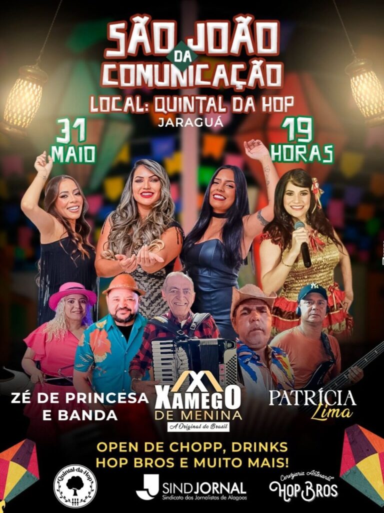 O evento será realizado no Quintal da Hop, no bairro do Jaraguá, em Maceió, e contará com uma programação musical para ninguém ficar parado. Entre as atrações confirmadas estão Zé de Princesa & Banda, o tradicional grupo Xamego de Menina e a cantora Patrícia Lima, que prometem colocar todo mundo pra dançar até a madrugada.